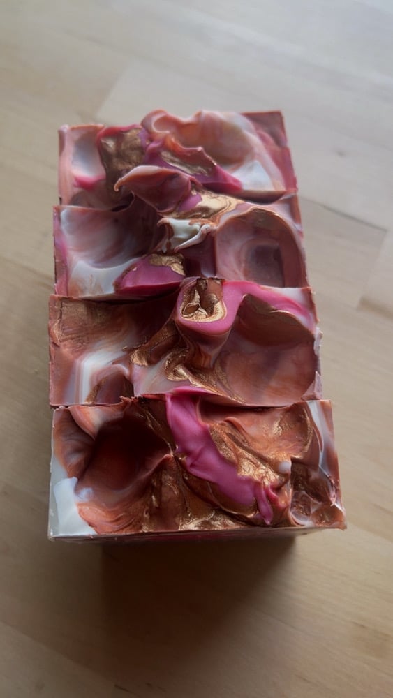 Ingredients: Coconut Oil, Shea Butter, Olive Oil, Castor Oil, Avocado Oil, Silk, Aloe Vera juice & Sodium Hydroxide. Each bar weight approx. 5.5 oz. They measure approx. 3 x 2.75 x 1 1/8. All bars are cut by hand, size, weight and design can vary slightly from bar to bar. Soap design might differ from the pictures, this doesn’t affect the soap scent, performance or ingredients. Discontinue if irritation occurs. PLEASE READ: Lather Up With Me is not responsable for any lost, stolen, misplaced or missed delivered packages.